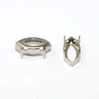 A copper frame with 4 holes designed to fit the 4mm x 8mm 4200 Navette. This piece has been plated in Platinum.