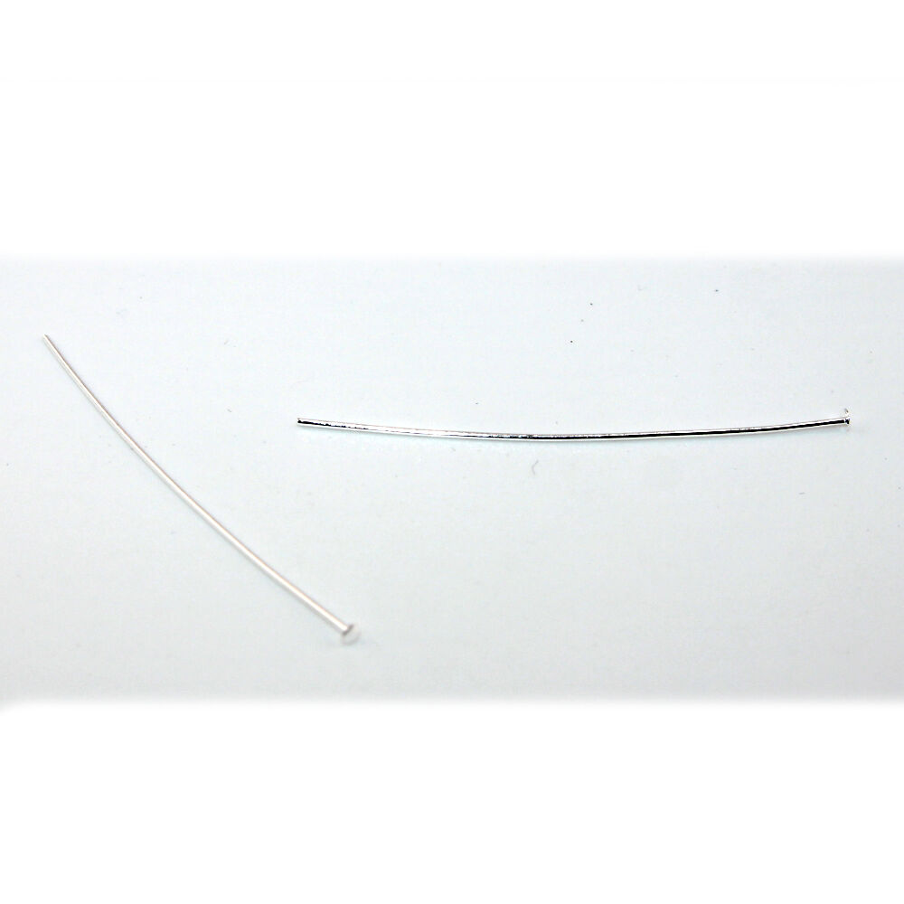 Headpins are indispensable components in jewelry making. These small, metal wires feature a flattened end, resembling a pinhead, that prevents beads and embellishments from slipping off. They act as anchors, allowing artisans to create secure and beautifully adorned designs. Headpins come in various lengths, gauges, and materials, such as stainless steel, sterling silver, and gold. By threading beads onto a headpin and forming a loop at the other end, jewelry makers can easily connect elements, fashioning elegant earrings, pendants, and dangles. These unassuming yet essential pieces facilitate the realization of intricate, personalized jewelry pieces, showcasing the marriage of functionality and aesthetics. 51mm x 0.7mm Silver Plated Brass Head Pin