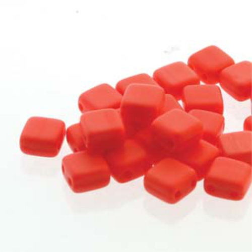 Sold Out - Backorder AvailableSize: 5mm x 3mm Hole: 0.8mm Colour: 93400-84110 - Matte Coral These 5mm Tile Czech glass beads feature a square shape with two stringing holes, opening up new design opportunities for all types of jewelry and craft ideas. Use them to connect strands of seed beads or put them in your seed bead embroidery projects for a geometric look, or use them in bead weaving patterns.