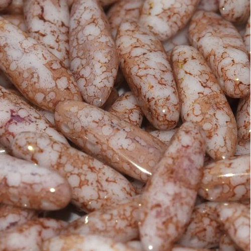 Sold Out - Backorder AvailableSize: 5mm x 16mm Hole: 0.8mm Colour: Chalk White Teracota Red - 03000-15495 Size: 5mm x 16mm x 3.5mm - the hole is less than 1mm in diameter. Get straight to the point of popular bead-weaving and stringing designs with these versatile, Czech pressed glass daggers. Used as dangles, drops, and flower petals when grouped together, these sleek beads add intriguing options to your designs. These Czech pressed glass beads have a uniform dagger shape and their large hole size to bead size ratio makes them ideal for consistent bead weaving texture and multiple passes of fine beading thread and are side drilled from the top.