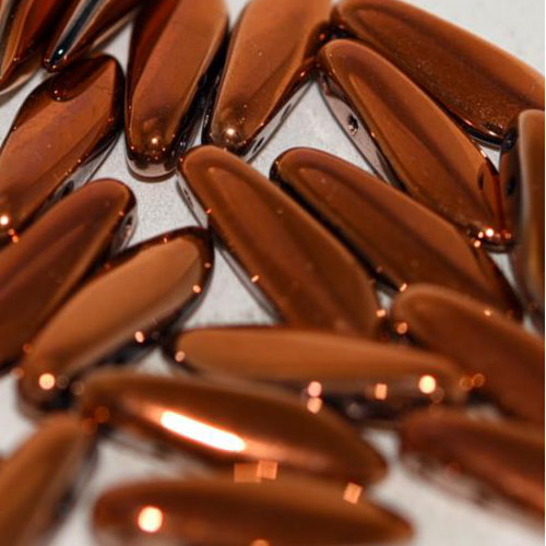 Size: 5mm x 16mm Hole: 0.8mm Colour: Jet Sunset Full - 23980-27133 Size: 5mm x 16mm x 3.5mm - the hole is less than 1mm in diameter. Get straight to the point of popular bead-weaving and stringing designs with these versatile, Czech pressed glass daggers. Used as dangles, drops, and flower petals when grouped together, these sleek beads add intriguing options to your designs. These Czech pressed glass beads have a uniform dagger shape and their large hole size to bead size ratio makes them ideal for consistent bead weaving texture and multiple passes of fine beading thread and are side drilled from the top.