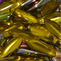 Get straight to the point of popular bead-weaving and stringing designs with these versatile, Czech pressed glass daggers. Used as dangles, drops and flower petals when grouped together, these sleek beads add intriguing options to your designs. These dagger shaped beads are side-drilled at the top.