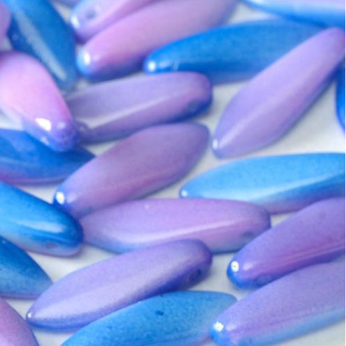 5mm x 16mm Dagger Bead - Chalk White Funky Blue - 03000-95101 - 25 Piece Bag