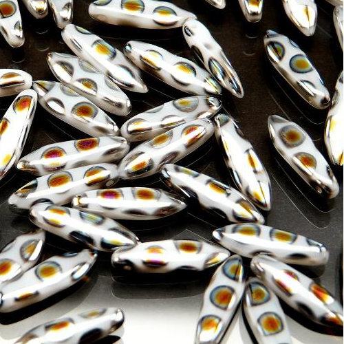 5mm x 16mm Dagger Bead - Chalk White Marea Dots - 03000-2800A - 25 Piece Bag