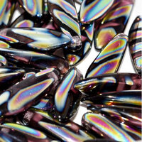 Get straight to the point of popular bead-weaving and stringing designs with these versatile, Czech pressed glass daggers. Used as dangles, drops and flower petals when grouped together, these sleek beads add intriguing options to your designs. These dagger shaped beads are side-drilled at the top.