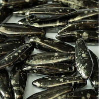 Get straight to the point of popular bead-weaving and stringing designs with these versatile, Czech pressed glass daggers. Used as dangles, drops and flower petals when grouped together, these sleek beads add intriguing options to your designs. These dagger shaped beads are side-drilled at the top.