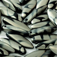 5mm x 16mm Dagger Bead - Jet Chrome Stripes Matted - 23980-2747V - 25 Piece Bag