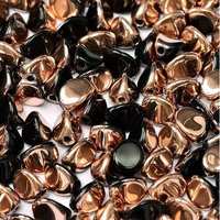 Size: 5mm x 3mm Hole: 1mm Colour: Jet Capri Gold - 23980-27101 Czech Pinch beads are oval-shaped with three flattened sides, size 5 x 3 mm. Can be used as an alternative to fire-polished beads, seed beads, or bicone beads. Available 10-gram or 100-gram Bags. These beads are sold in a 5gm bag (approx 120 beads) or 50gm bag (approx 1200 beads).