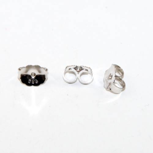 A 925 Sterling Silver butterfly back suitable for use with stud earrings. Sold in a pair, each piece is 5mm x 6mm x 3mm with a 0.7mm hole.