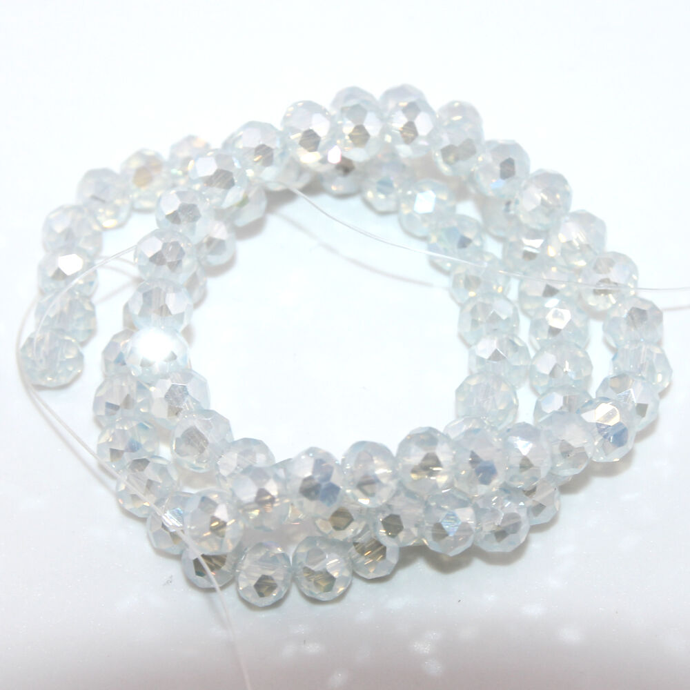 Rondelles are a versatile bead which can be used as a spacer in between larger beads or on their own to make an impact. These Moonlight glass rondelles are 5mm x 6mm with a 1mm hole.