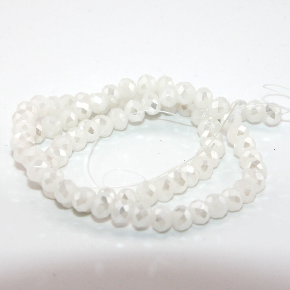 Rondelles are a versatile bead which can be used as a spacer in between larger beads or on their own to make an impact. These White Opal glass rondelles are 5mm x 6mm with a 1mm hole.