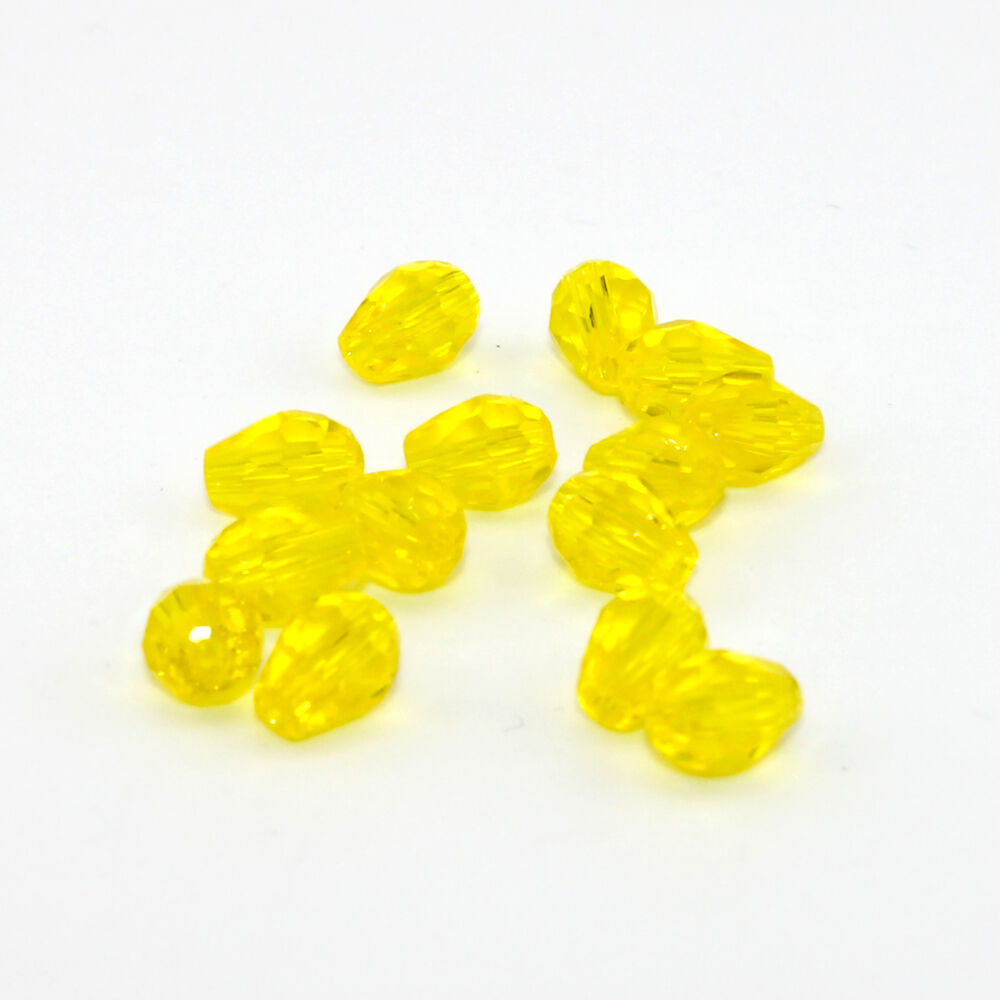 A stunning multi-faceted teardrop crystal bead. 5mm x 7mm Yellow Faceted Tear Drop Bead - 20 Piece Bag