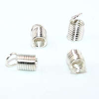Greek spring cord ends add both security and decorative detail to jewellery designs. Featuring a distinctive coiled wire design wrapped around the cord, these findings offer a stylish way to finish leather, suede, and thicker woven cords. The spiral “spring” section grips the cord firmly when attached—often with a combination of gentle compression and adhesive—creating a strong and reliable hold. Popular in bracelet and necklace designs, Greek spring cord ends provide a more ornate alternative to standard caps. Their elegant, classical-inspired look pairs beautifully with both rustic leather pieces and more refined, layered creations. Once secured, the attached loop makes it easy to add a clasp, jump ring, or extender chain for a professional finish. Available in a variety of sizes and metal tones, Greek spring cord ends are ideal for adding texture and visual interest while ensuring durability. They are a practical yet decorative component that elevates handmade jewellery with a timeless, artisan feel. 5mm x 9mm Greek Spring - Silver - 5mm x 9mm with a 3.6mm hole