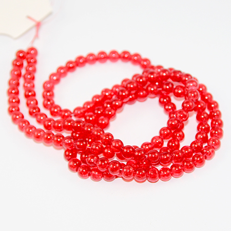 Crackle Glass is a technical process first invented by the Venetian Glass Makers in the 16th Century. During the glass making process glass is immersed into cold water whilst molten hot, thus cracking the glass, up on reheating the glass it is moulded or shaped into the desiered shape and seals the cracks. When you run your hands over the crackle glass beads you will feel a smooth surface. This strand is an 78cm strand of 6mm Red glass beads.