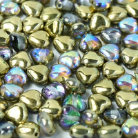 Size: 6mm Hole: 1mm Colour: Crystal Golden Rainbow - 00030-98536 These sweet little 6mm hearts are made from Czech-pressed glass, they are drilled vertically with a 1mm hole and are sold per lot of 30 or 300 beads.