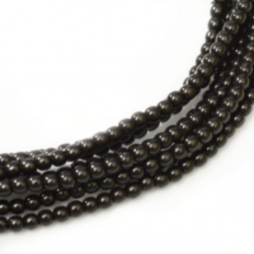 6mm Czech Glass Pearl - 100 Bead Strand - Black - Shiny - 70409