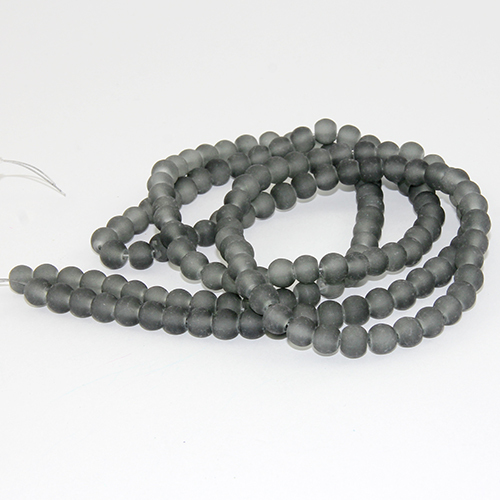 6mm Frosted Glass Beads - 78cm Strand - Grey