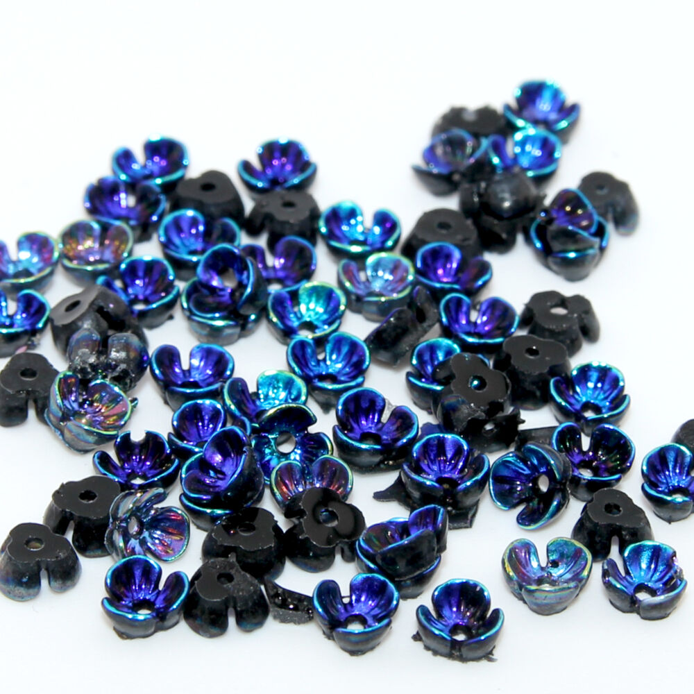 Bring floral beauty and texture to your bead embroidery projects with these Acrylic Flower Beads. Each flower features a flat bottom, making it easy to stitch securely onto fabric or bead foundations — perfect for seed bead embroidery, brooches, or decorative accents on accessories. Lightweight yet sturdy, these acrylic blooms add dimension without weighing your work down. Their finely detailed petals capture light beautifully, giving your designs a soft, radiant sparkle. Use them as focal points in floral motifs, or combine them with seed beads, crystals, and pearls for a lush, layered effect. The flat base also makes them ideal for gluing onto settings or bezels, offering versatile design possibilities. Available in a variety of colours, these flower beads are a wonderful way to bring life, colour, and texture to your creative projects — from jewellery to decorative embellishments. 6mm Jet AB 3 Petal Acrylic Flower - 10 Piece Pack