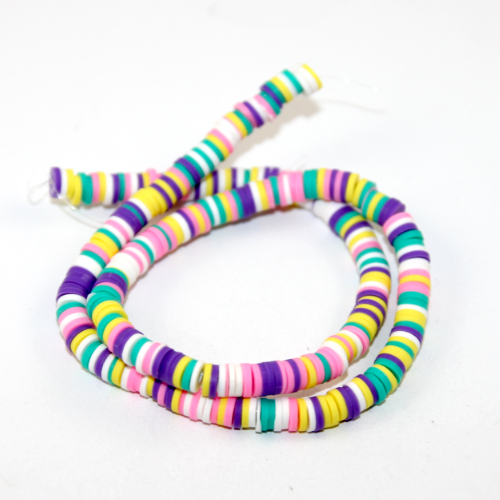 These 6mm polymer clay heishi beads are a great way to add a pop of colour into your designs, they can be used as a simple spacer or in a group to create a tube like effect. Each bead is 6mm x 1mm with a 2mm hole. 6mm Mix 09 Polymer Clay Heishi Beads - 38cm Strand