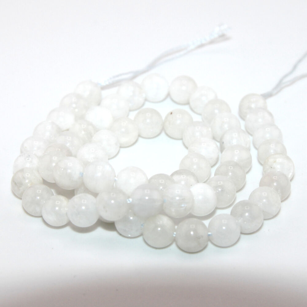 6mm Moonstone Round Beads - 38cm Strand Moonstone, an ethereal gem, encapsulates the mystique of the lunar cycle within its iridescent glow. Its name alone evokes the moon's influence, and its significance is equally enchanting. Moonstone is the stone of intuition and feminine energy, revered for its ability to heighten one's psychic abilities and enhance emotional intelligence. It symbolizes new beginnings, making it a cherished gift for those embarking on transformative journeys. This gem fosters emotional stability and balance, promoting inner peace and serenity. Often associated with love and passion, Moonstone encourages deep connections and opens the heart to vulnerability. Its shimmering play of colors echoes the ever-changing phases of life and the enigmatic allure of the moon itself.