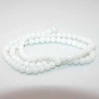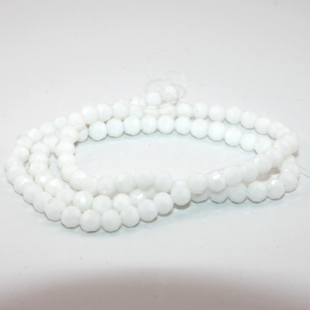 6mm White Faceted Opaque Glass Round Beads - 50cm Strand