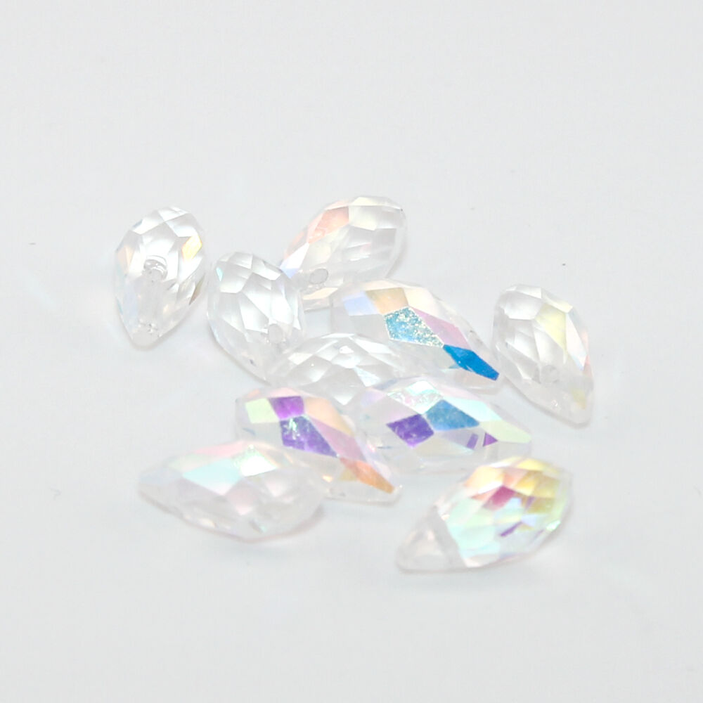 A small tear drop shape, featuring multiple facets that capture the light. 6mm x 12mm Crystal AB Faceted Tear Drop Pendant - 10 Piece Bag