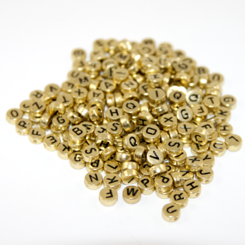 7mm Alphabet Acrylic Flat Round Bead Mix - Gold & Black - 200 Piece Bag