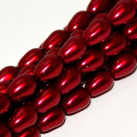 7mm x 5mm Czech Glass Tear Drop Pearl - 75 Bead Strand - Green Apple - Shiny - 10158