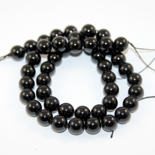 In Stock8mm Black Tourmaline - AA Grade Round Beads - 38cm Strand Black Tourmaline, a powerful and protective gemstone, exudes an air of mystery with its deep, jet-black color. This variety of tourmaline is often known as the "Stone of Protection," symbolizing grounding, shielding, and the absorption of negative energy. Its sleek, opaque surface is popular in jewelry and as talismans. Black Tourmaline is believed to create an energetic shield, deflecting negativity and fostering emotional stability. Wearing this gemstone is thought to instill a sense of security and inner strength, making it a cherished choice for those seeking to fortify their boundaries and maintain a sense of balance in the face of life's challenges. It stands as a symbol of resilience and steadfast protection.