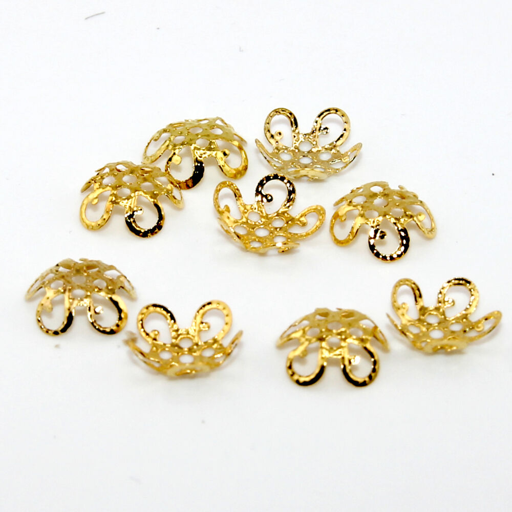 8mm Bright Gold Plated Filigree Scroll Bead Cap - Brass - 10 Pieces