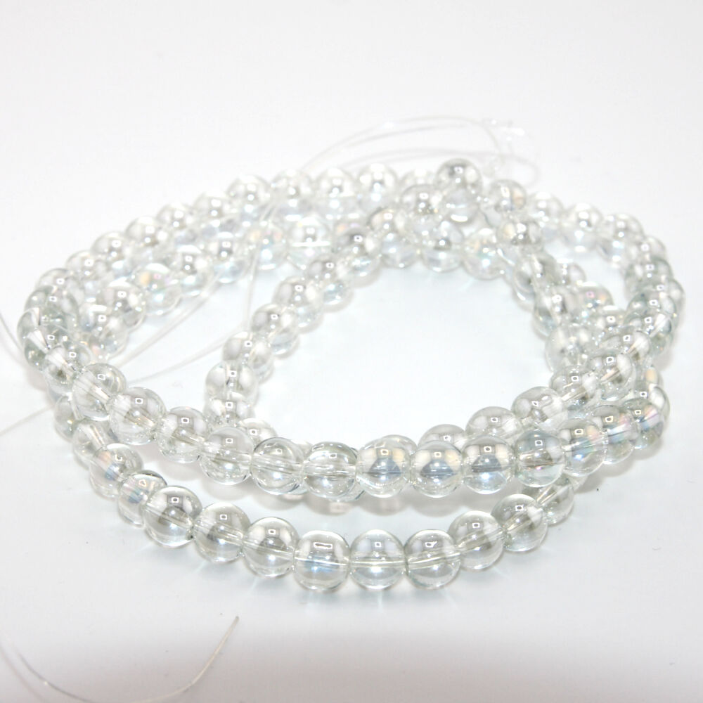 8mm Clear AB Electroplated Glass Beads - 70cm Strand