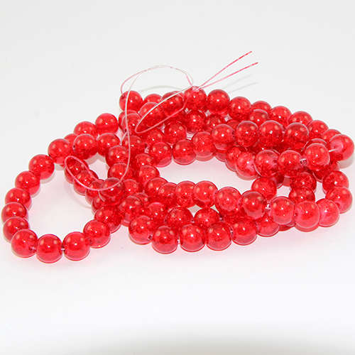 Crackle Glass is a technical process first invented by the Venetian Glass Makers in the 16th Century. During the glass making process glass is immersed into cold water whilst molten hot, thus cracking the glass, up on reheating the glass it is moulded or shaped into the desiered shape and seals the cracks. When you run your hands over the crackle glass beads you will feel a smooth surface. This strand is an 78cm strand of 8mm Red glass beads.