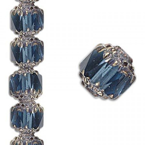 Size: 8mm Colour: Montana - 30320-14415 The crown bead is a unique pressed czech glass bead - it has a triangular facet across the body of the bead whilst the top and bottom have a distinctive bead cap design which has a Antiqued Bronze finish. These beads are great as focals in a design or used to make a colourful set of rosary beads.