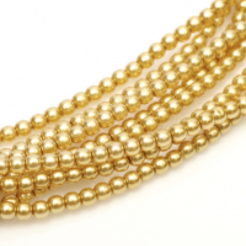 In StockSize: 8mm Hole: 0.8mm Colour: Light Gold - Shiny - 70486 Czech Glass pearls were originally intended to imitate real pearls. These glass pearls are created using the same techniques for pressed and fire polished beads, but have a different finishing technique. The qty of beads per strand is approximate and may vary by 1-2 beads per strand.