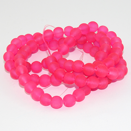 Frosted Glass beads are a great way to add texture to your designs. This strand is an 78cm strand of 8mm Dark Neon Pink matte glass beads.