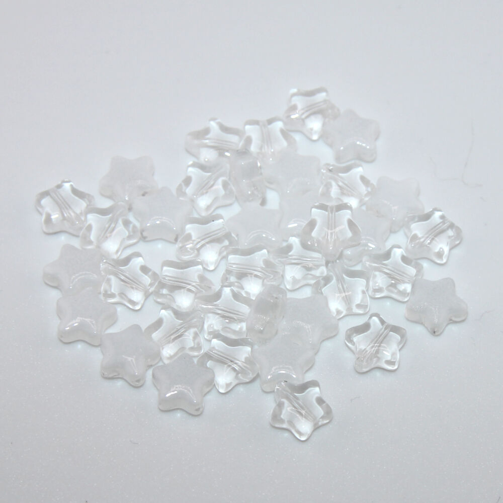 These 8mm stars are made from Czech-pressed glass, they are drilled vertically with a 0.7mm hole and are sold in packs of 20 8mm Matte Crystal Czech Glass Stars - 20 Pieces