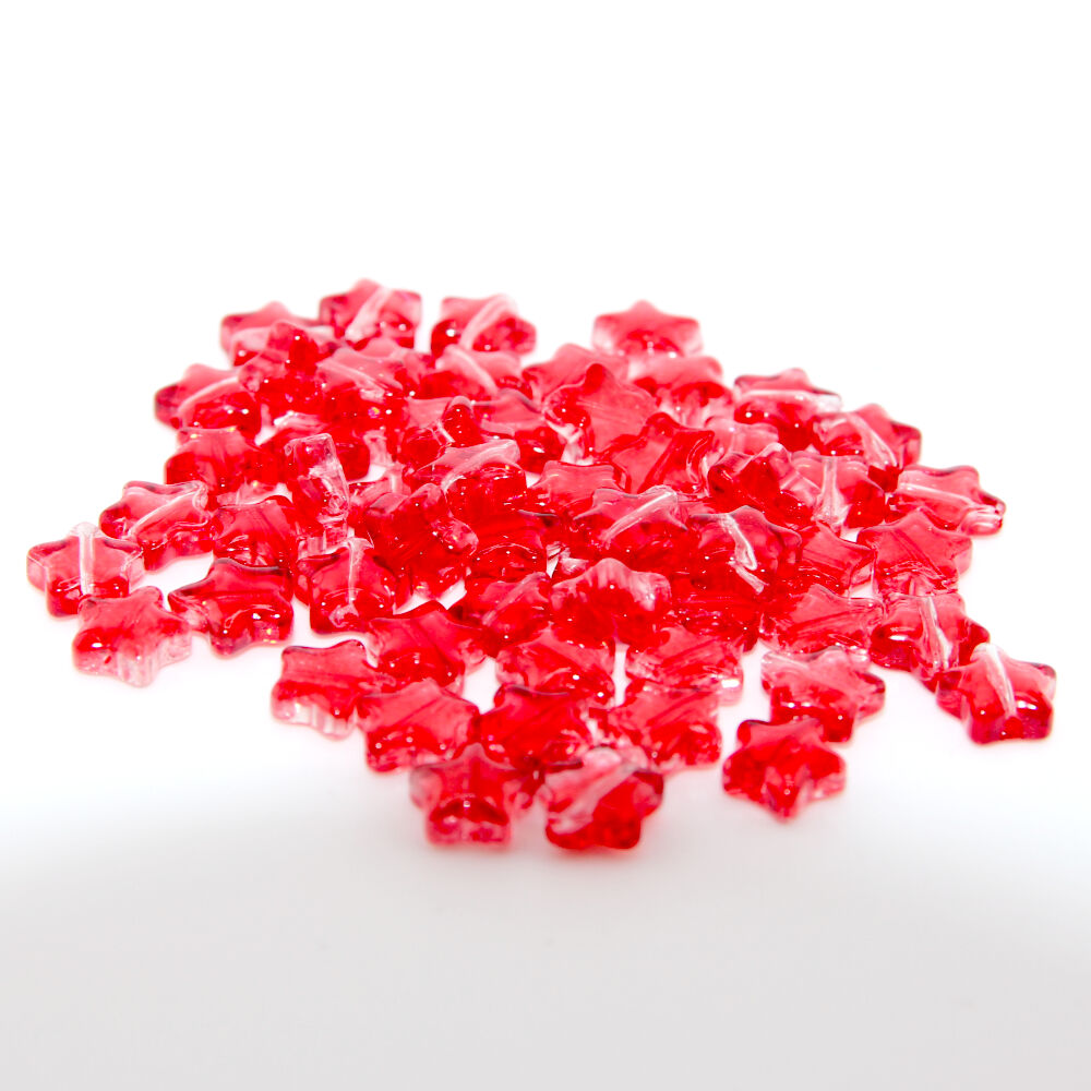 These 8mm stars are made from Czech-pressed glass, they are drilled vertically with a 0.7mm hole and are sold in packs of 20 8mm Red Czech Glass Stars - 20 Pieces