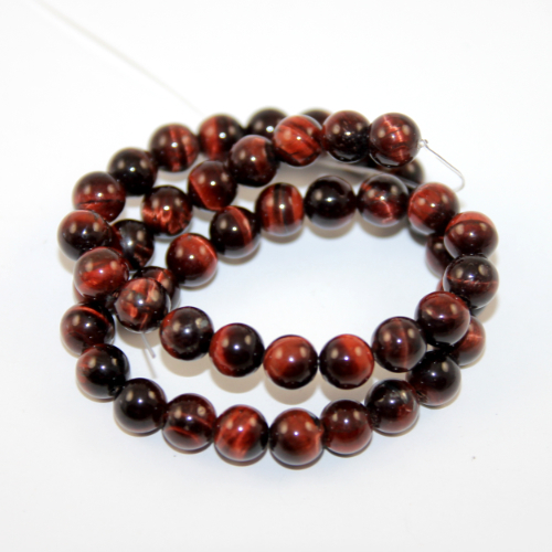 Red Tiger Eye can enhance confidence and self-esteem. It helps provide motivation. Red Tiger's Eye can assist with staying relaxed and centered when surrounded by chaos. Red Tiger's Eye Stones can awaken latent talents. Red Tiger's Eye is a balancing stone. 8mm Red Tiger Eye Round Beads - 38cm Strand