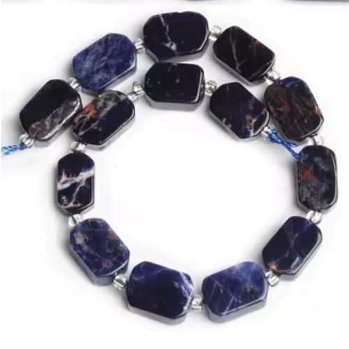 Sold Out - Backorder Available8mm x 12mm Sodalite Rectangle Beads - 19cm Strand Sodalite brings order and calmness to the mind. It encourages rational thought, objectivity, truth, and intuition, along with verbalisation of feelings. Sodalite brings emotional balance and calms panic attacks. It enhances self-esteem, self-acceptance, and self-trust. Sodalite balances the metabolism boosts the immune system and overcomes calcium deficiencies. It combats radiation damage by soaking up electromagnetic smog. Sodalite treats the throat, vocal cords, larynx and helps with hoarseness and digestive disorders. It cools fevers, lowers blood pressure, and stimulates the absorption of body fluids. Sodalite can also help to prevent insomnia.