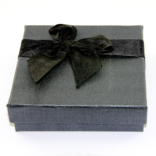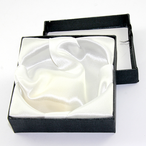 A simple black cardboard bracelet gift box with a organza bow, this box has a centre sponge to hold the bracelet in place. This piece is 90mm x 90mm.