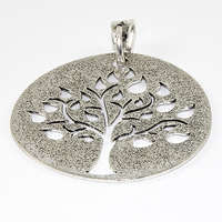 A oversized carved tree of life pendant. This zinc alloy piece is finished in antique silver and measures 71mm x 60mm with a 5.4mm hole.