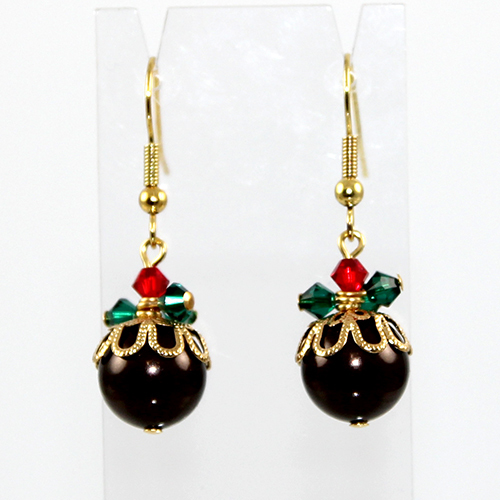 Christmas pudding earrings feature Swarovski© Crystal Pearls and Swarovski© Crystal Bicones.