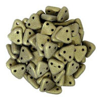 Size: 6mm Hole: 0.8mm Colour: TRI06-23980-79080 - Metallic Suede Gold The CzechMates triangle beads are a fun way to add dimension, detail and a pointed style to your designs. These small, flat beads are triangular in shape and feature two stringing holes on one end of the triangle shape. The stringing holes will allow you to add these beads to multi-strand designs or innovative bead embroidery designs and the triangles will stand up and out. They look great between seed beads in bead weaving patterns.