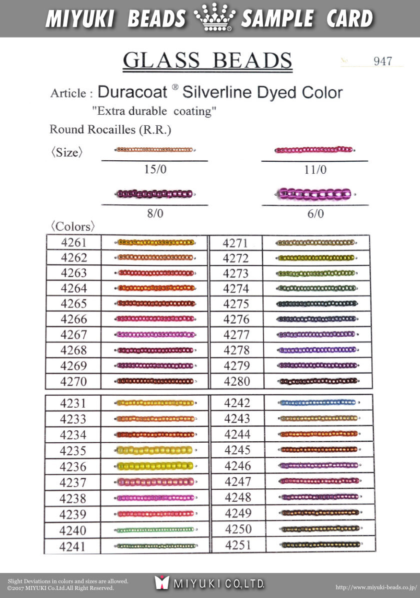 Miyuki Duracoat® Silverline Dyed Colour Chart