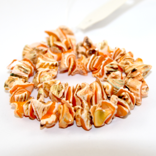 In StockA fun strand of shell chips - a great way to bring a little bit of the beach to your design. This is a 38cm strand of bright orange shell chips measuring 10mm x 14mm x 8mm to 12mm x 3mm x 6mm with a 1mm hole.