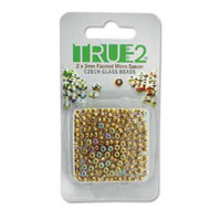 Style: Bridge Size: 2mm x 3mm Beads Hole: 0.8mm Product Code: FPMS2300030-GPAB Colour: 24K Gold Plated AB These micro spacers are made from Czech glass and are useful for a variety of strung, handsewn or wire wrap designs. Their faceted surface will add an interesting texture to your piece.