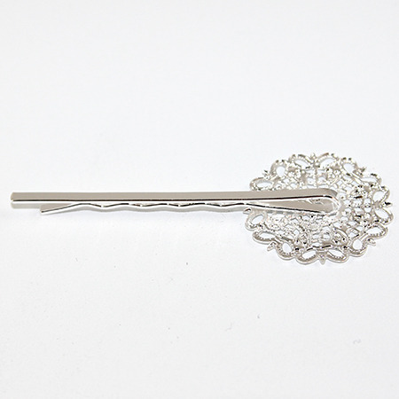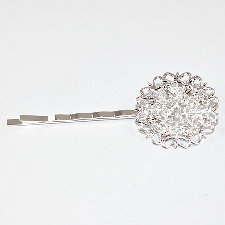 A fun flower filigree on a bobby pin - perfect for sparkly hair pieces. The size of this piece is 60mm x 25mm.