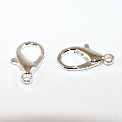 A lobster clasp also known as a lobster hook, or parrot clasp, it is a fastener that is held closed by a spring. The lobster clasp is opened or closed by holding a small lever, usually with a fingernail, long enough to apply, then it is attached (or removed from) a short link-chain, end tag or a ring. Lobster clasps are often used for necklaces, bracelets, and keychains. Lobster clasps are named as such because of their "pinching" mechanism, and they are often shaped like a lobster's claw.