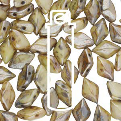 Style: Gem Duo Size: 8mm x 5mm Beads Inner Hole: 0.8mm Product Code: GD8503000-43500 Colour: Chalk Rembrandt These gorgeous diamond-shaped glass beads have a flat bottom and raised beveled top that resembles a faceted gemstone. With two generously sized holes that run parallel through the points, they are perfect for bead stitching patterns, stringing projects, and more.