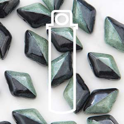 Style: Gem Duo Size: 8mm x 5mm Beads Inner Hole: 0.8mm Product Code: GD8503849-14459 Colour: Duet Black & White Green Luster These gorgeous diamond-shaped glass beads have a flat bottom and raised beveled top that resembles a faceted gemstone. With two generously sized holes that run parallel through the points, they are perfect for bead stitching patterns, stringing projects, and more.
